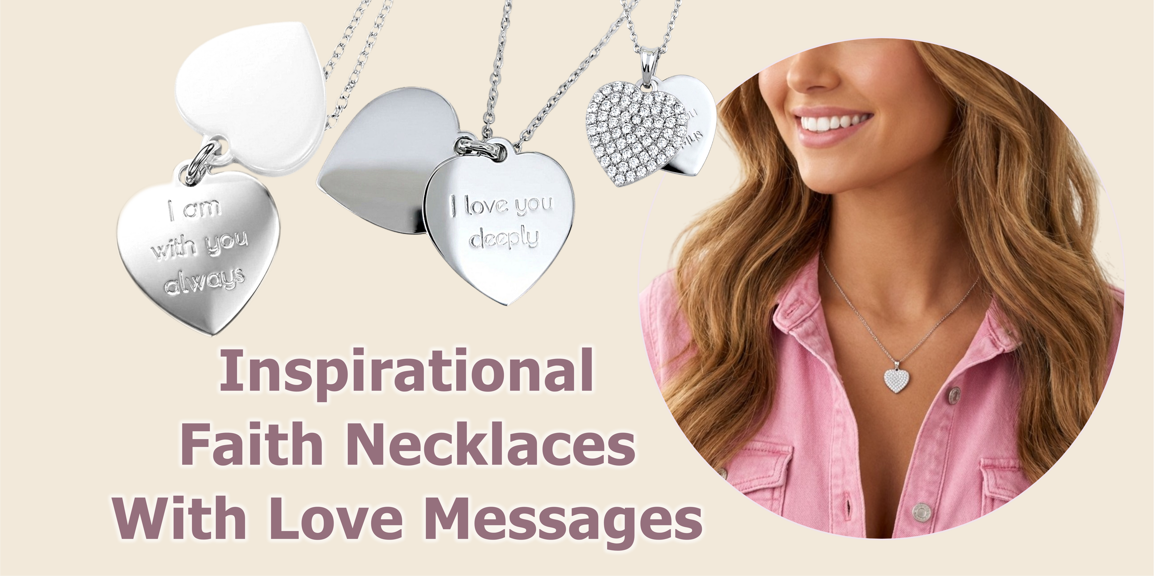 ANGELIQUE "I Am With You Always" Pave White CZ Diamond Double Heart Pendant Necklace