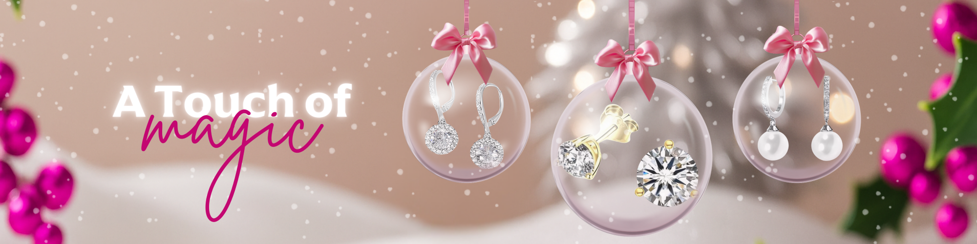 KATHERINE Fuchsia And White CZ Diamond Simulant Three-Row Eternity Ring in Rhodium Over Sterling Silver