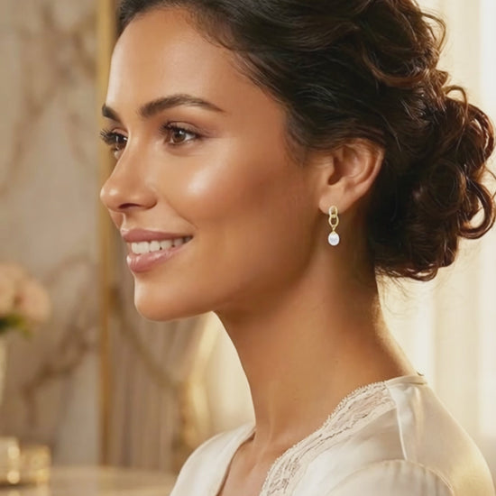 Suspended gracefully from your earlobes, Abigail earrings enhance any outfit with their timeless and sophisticated design. Crafted from high-quality sterling silver and plated with 14K gold, these earrings boast an air of luxury and exclusivity. The classic pearl drops add a touch of grace and refinement to your overall look. Elevate your jewelry game with these exquisite earrings that effortlessly blend art, fashion, and sophistication.