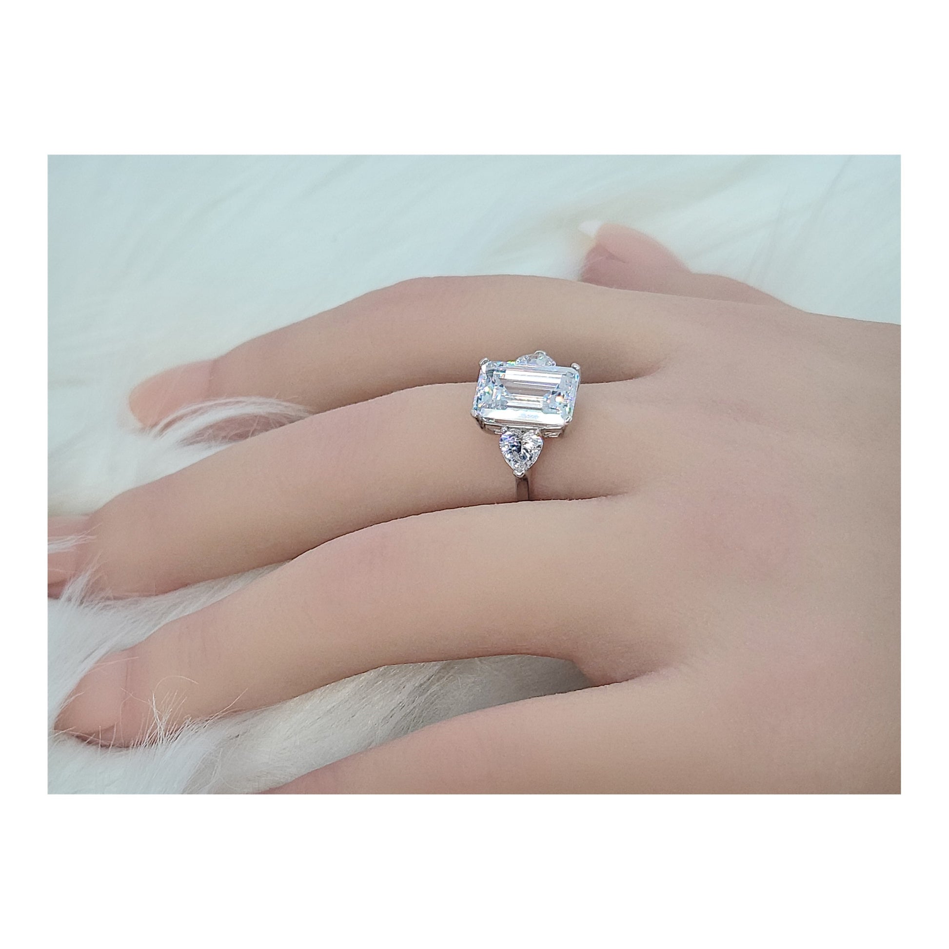 The Amanda clear cubic zirconia emerald cut three stone ring is a stunning symbol of eternal love, meticulously crafted from genuine sterling silver and rhodium plated. Its timeless and romantic design makes it the perfect way to commemorate a special love. With its combination of sophistication and heartfelt sentiment, this three stone ring is a top pick, making it a truly elegant way to honor your special moment.