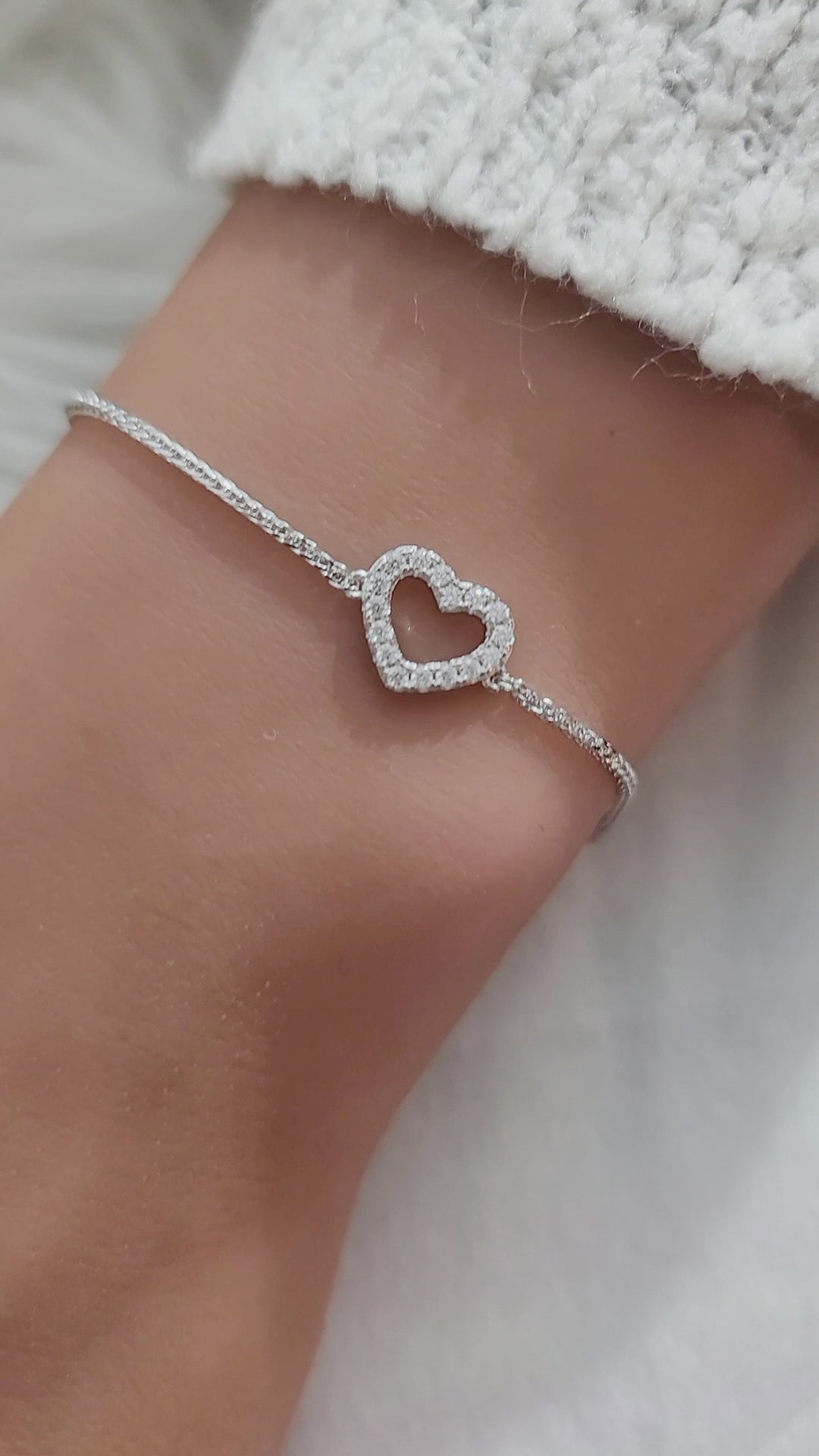 The AMY Open Pave Heart Bracelet offers a delicate and graceful design that enhances any look. Crafted in sterling silver with rhodium plating, this elegant piece combines simplicity and femininity effortlessly. Ideal for enhancing any look with delicate sophistication.