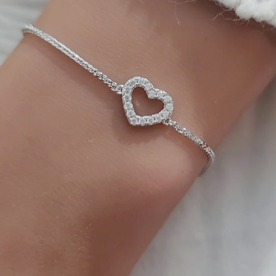 AMY Open Pave Heart Bracelet in Rhodium Over Sterling Silver