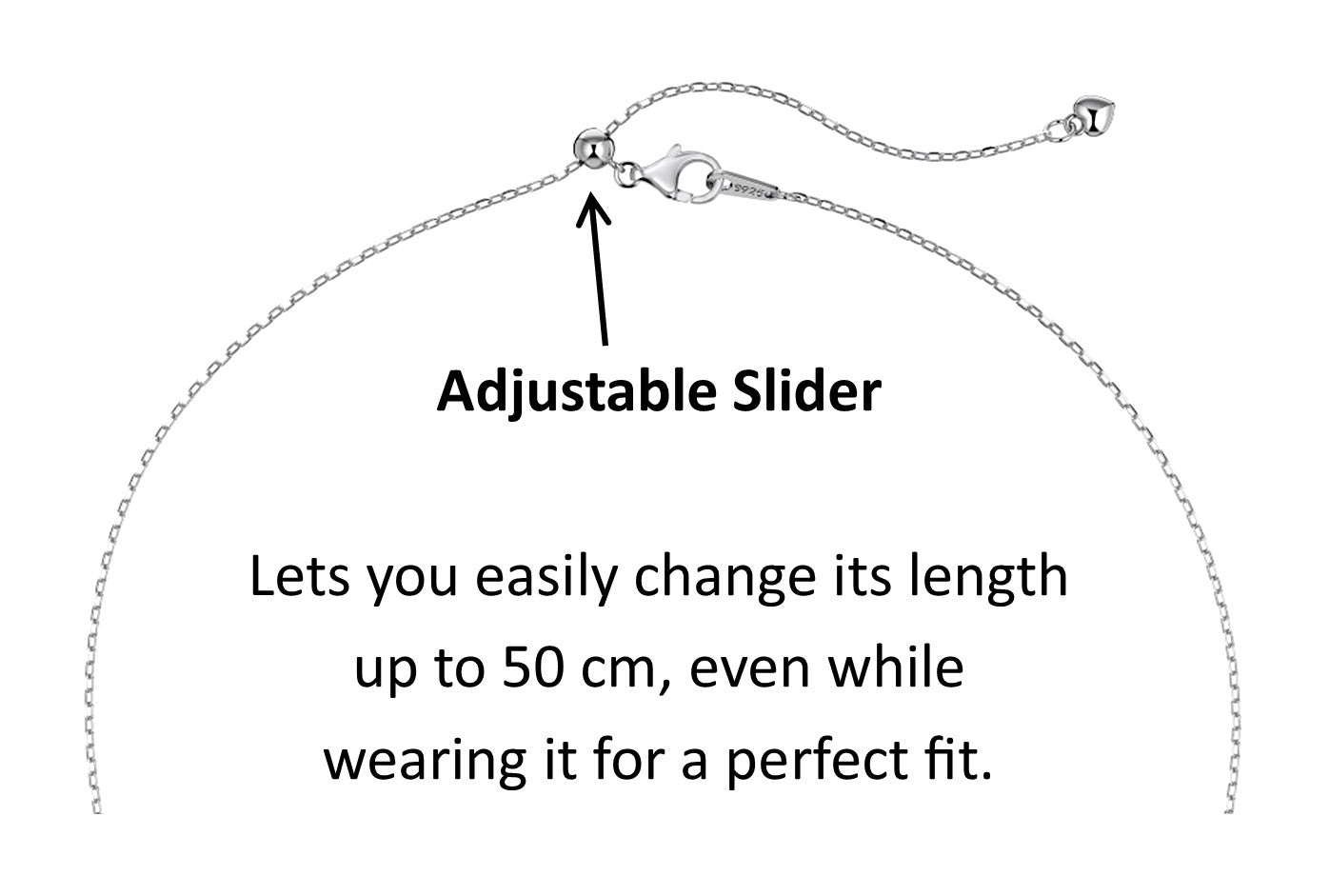 - Chain length: Its adjustable slider lets you easily change its length up to 50 cm, even while wearing it for a perfect fit.