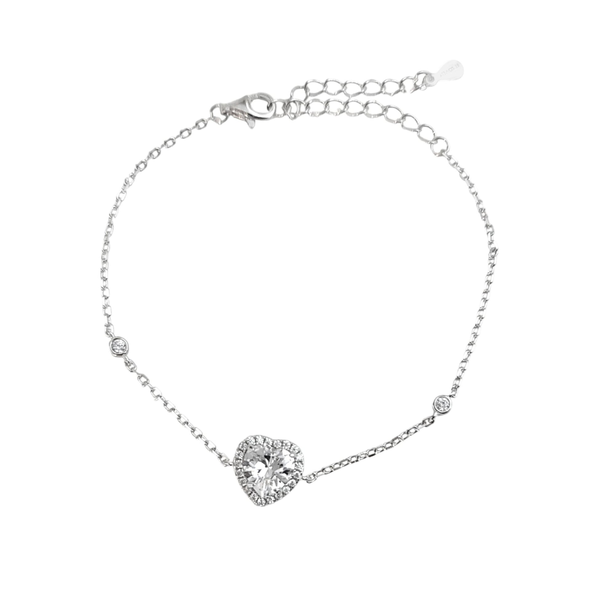ANGIE Halo Heart Bracelet in Rhodium Over Sterling Silver