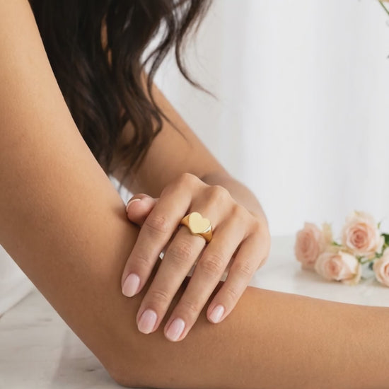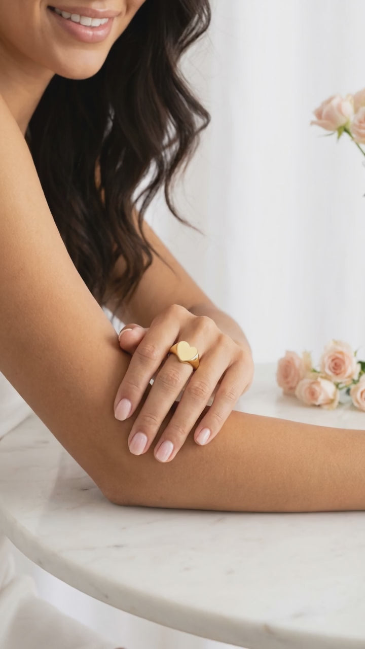 ASHLEY 12MM Heart Signet Ring 18K Gold Over Sterling Silver