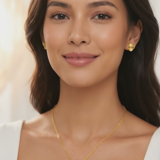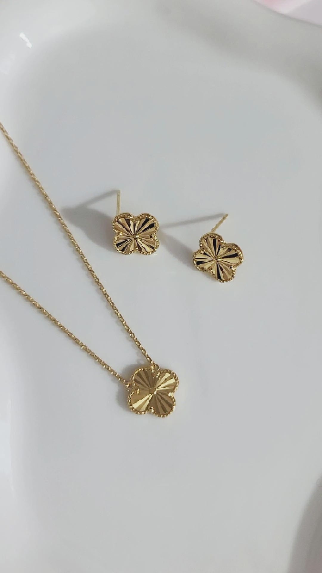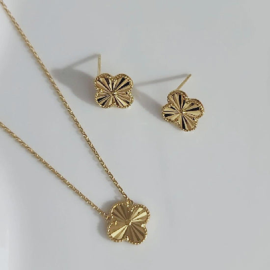 Experience the elegance and beauty of our Audrey Four-Leaf Clover Necklace, made with sterling silver and coated in luxurious 18K gold. The gorgeous quatrefoil clover leaf design adds a touch of elegance to any outfit. Perfect for those who want to add a little glam to their accessories! Transform your style with the elegant and stunning Audrey necklace. Prepare to be amazed by the class and beauty they bring!