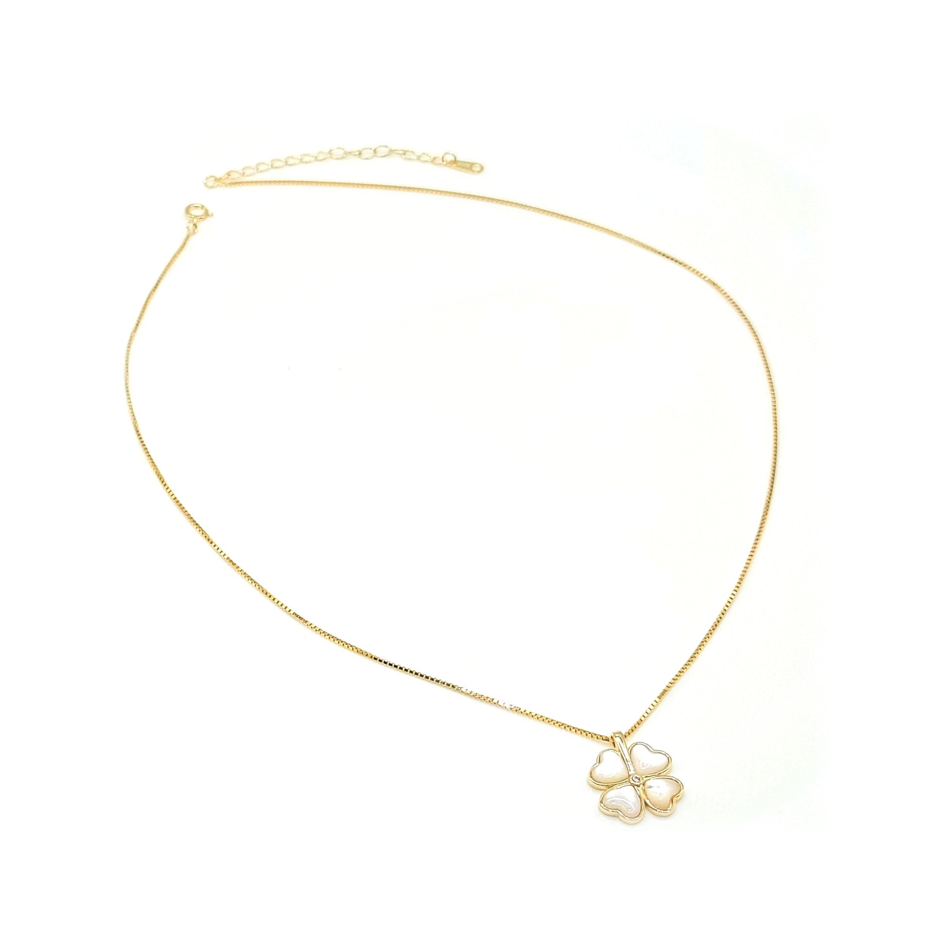 Add a touch of elegance to any outfit with the Beatrice Opal Heart Four-Leaf Clover necklace. Crafted from sterling silver and plated in 18K gold, this necklace is not only stunning but also high-quality and durable. The opal heart clover leaf design adds a touch elegance, making it a must-have accessory for any outfit, this necklace will make you feel confident and stylish all day long.