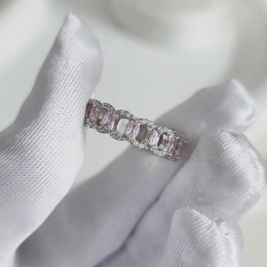 BELLA Pink and White CZ Diamonds Ring in Rhodium Over Sterling Silver