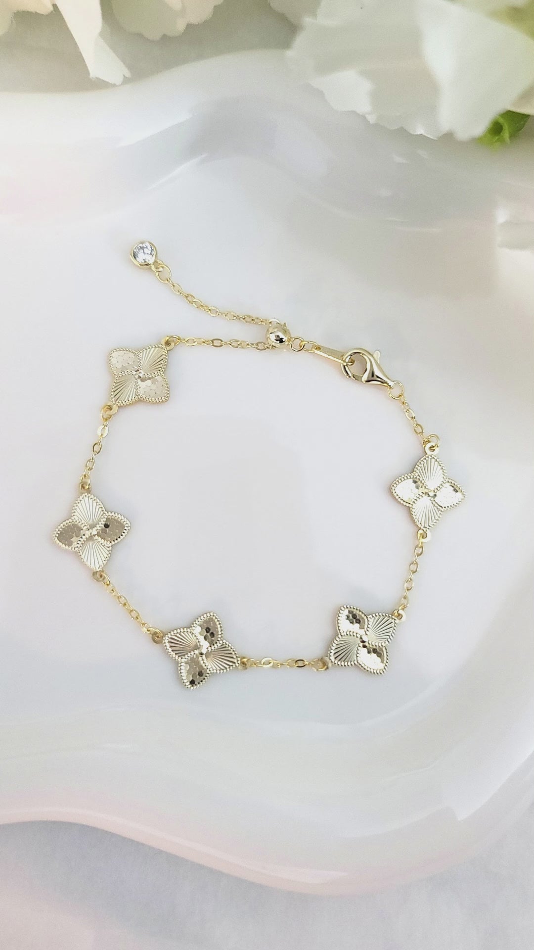 CASSIE Four-Leaf Clover Bracelet 14K Gold Over Sterling Silver