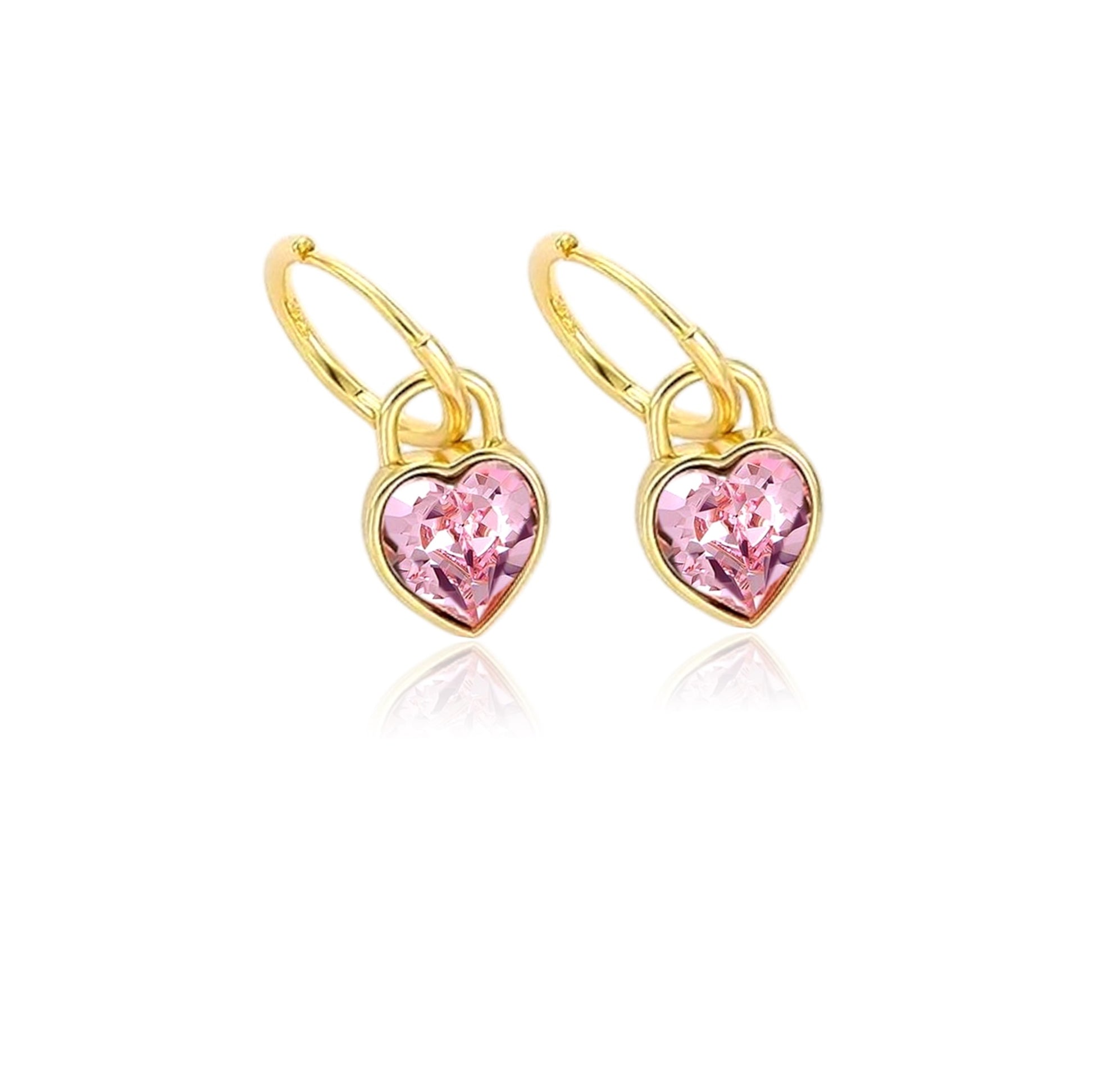 CLARA Pink Austrian Crystal Heart Detachable Drop Earrings 14K Gold Over Sterling Silver
