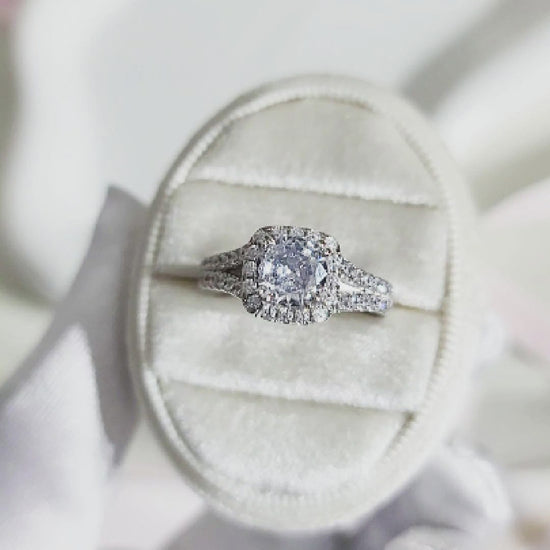 EMILY White CZ Diamond Halo Square Ring in Rhodium Over Sterling Silver