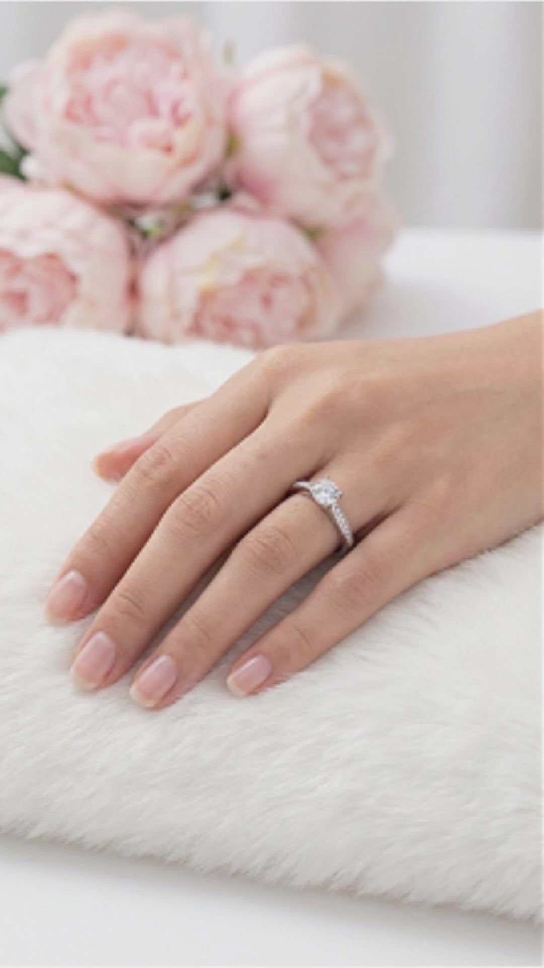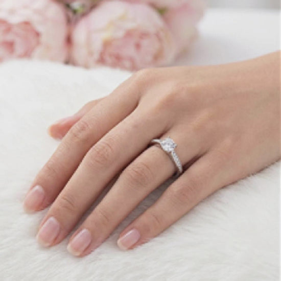 JOCELYNE Solitaire White CZ Diamond Ring in Rhodium Over Sterling Silver