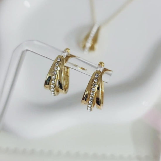 Indulge in luxurious extravagance with these stunning hoop earrings adorned with exquisite Swarovski Austrian crystals. Crafted from superior sterling silver and coated with a lustrous 18K gold plating, these earrings exudes unparalleled quality and grace. Elevate your style with these earrings, radiating confidence and enhancing your innate beauty. Whether as a gift or a self-pampering treat, get ready to dazzle and shine with Josée!