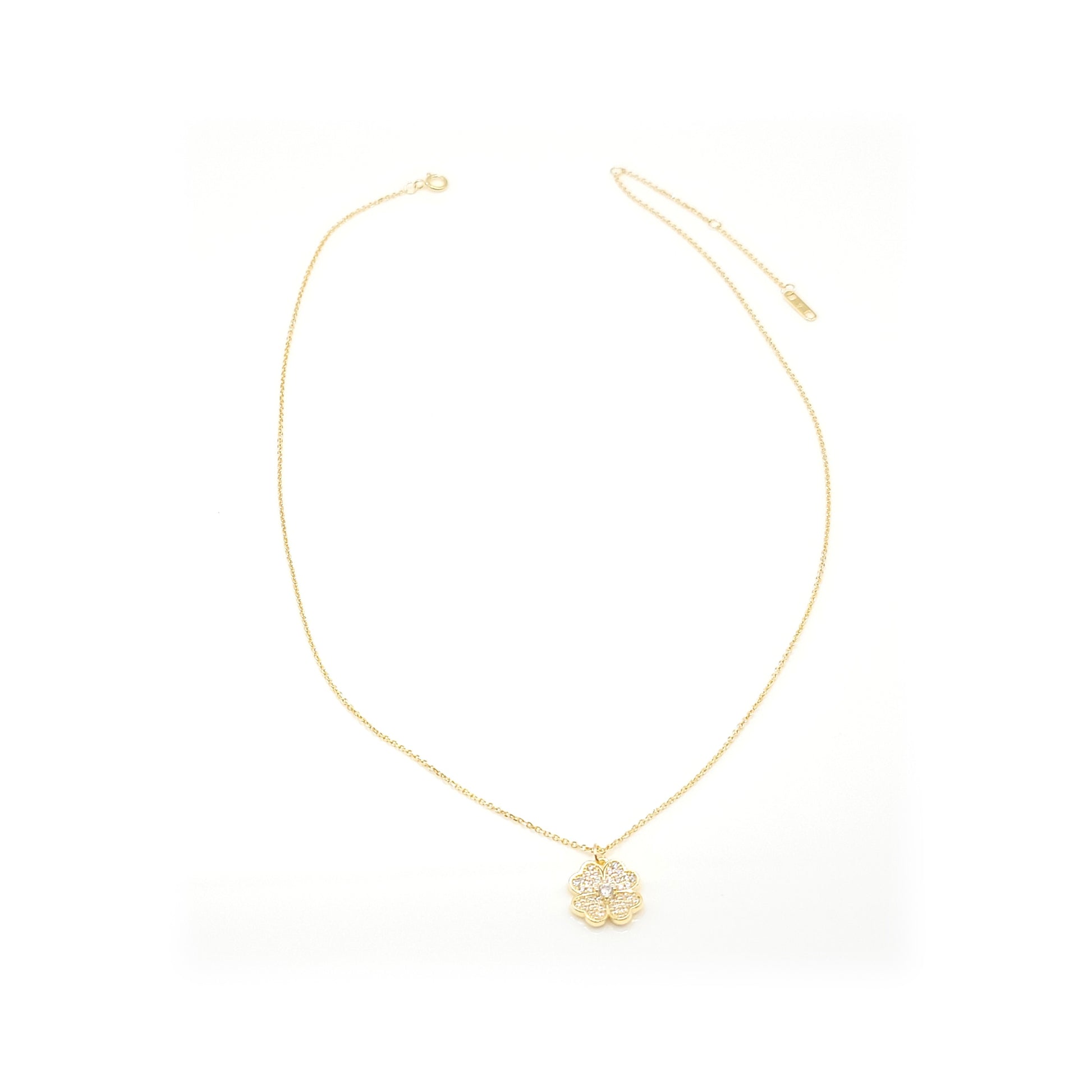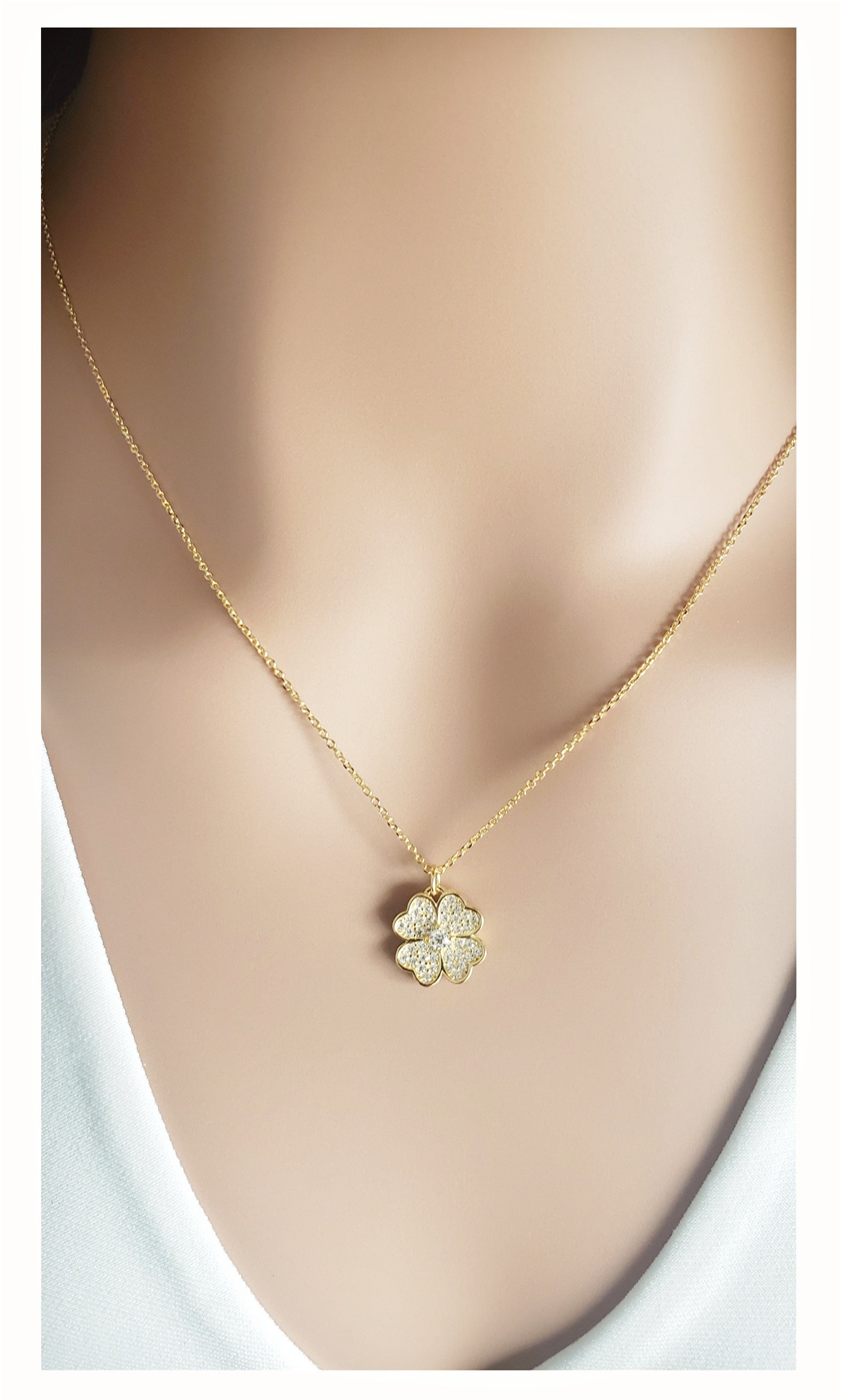 This heart shaped quatrefoil clover leaf design, crafted in sterling silver and 14K gold plating, adds a touch of elegance and simplicity to any outfit. Its timeless beauty makes it a perfect accessory for any occasion and a thoughtful gift for someone special.