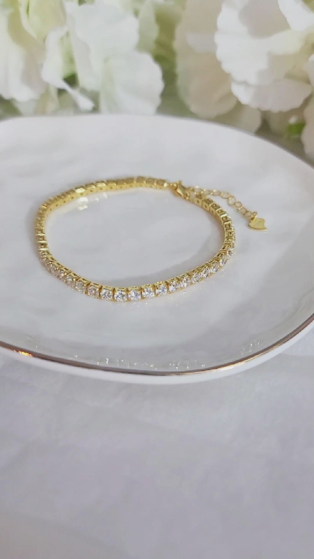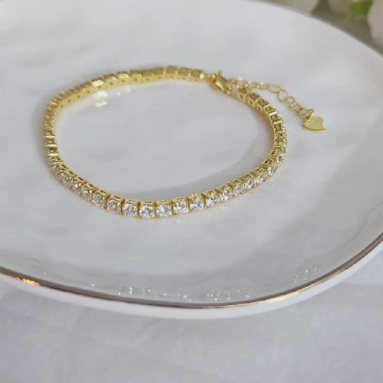KATE 3MM White CZ Diamond Tennis Bracelet 18K Gold Over Sterling Silver