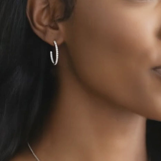 KAYLEE 20MM White Crystal Diamond Hoop Earrings 18K White Gold Over Sterling Silver