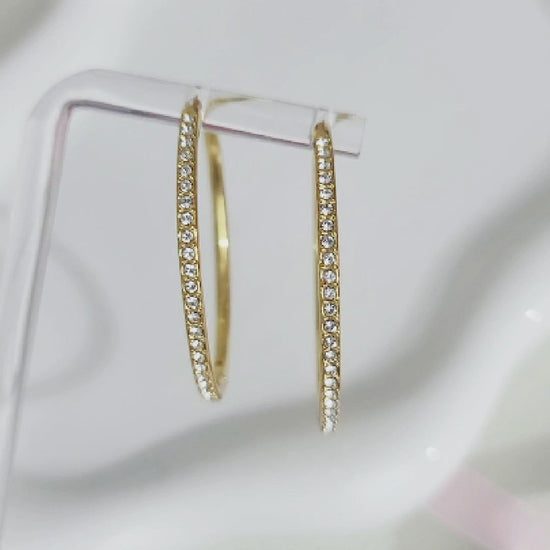 KAYLEIGH 40MM White Crystal Diamond Hoop Earrings 18K Gold Over Sterling Silver