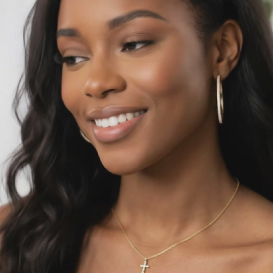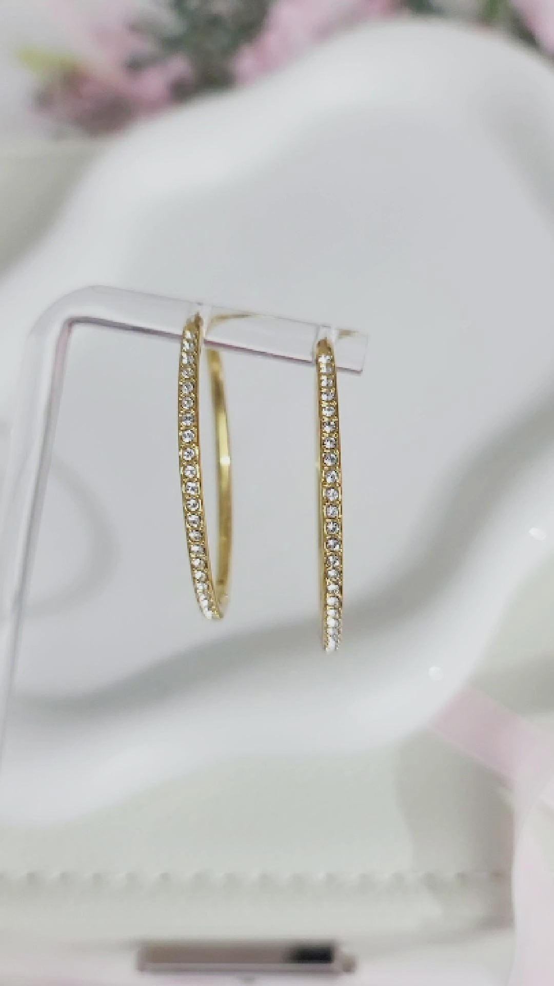 Add a touch of elegance and sophistication to any outfit with our Kayleigh 40mm Austrian crystal hoop earrings. Adorned with sparkling crystals from the renowned Swarovski brand, these earrings are the perfect statement piece for any outfit. The 18K gold plating adds a touch of sophistication, making these hoops the must-have accessory for any fashion-forward woman. Perfect for any occasion, these earrings are not just a fashion statement, but also a symbol of luxury and refined taste.