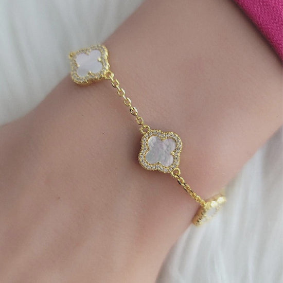 LAURA Four-Leaf Clover CZ Pearl Bracelet 18K Gold Over Sterling Silver