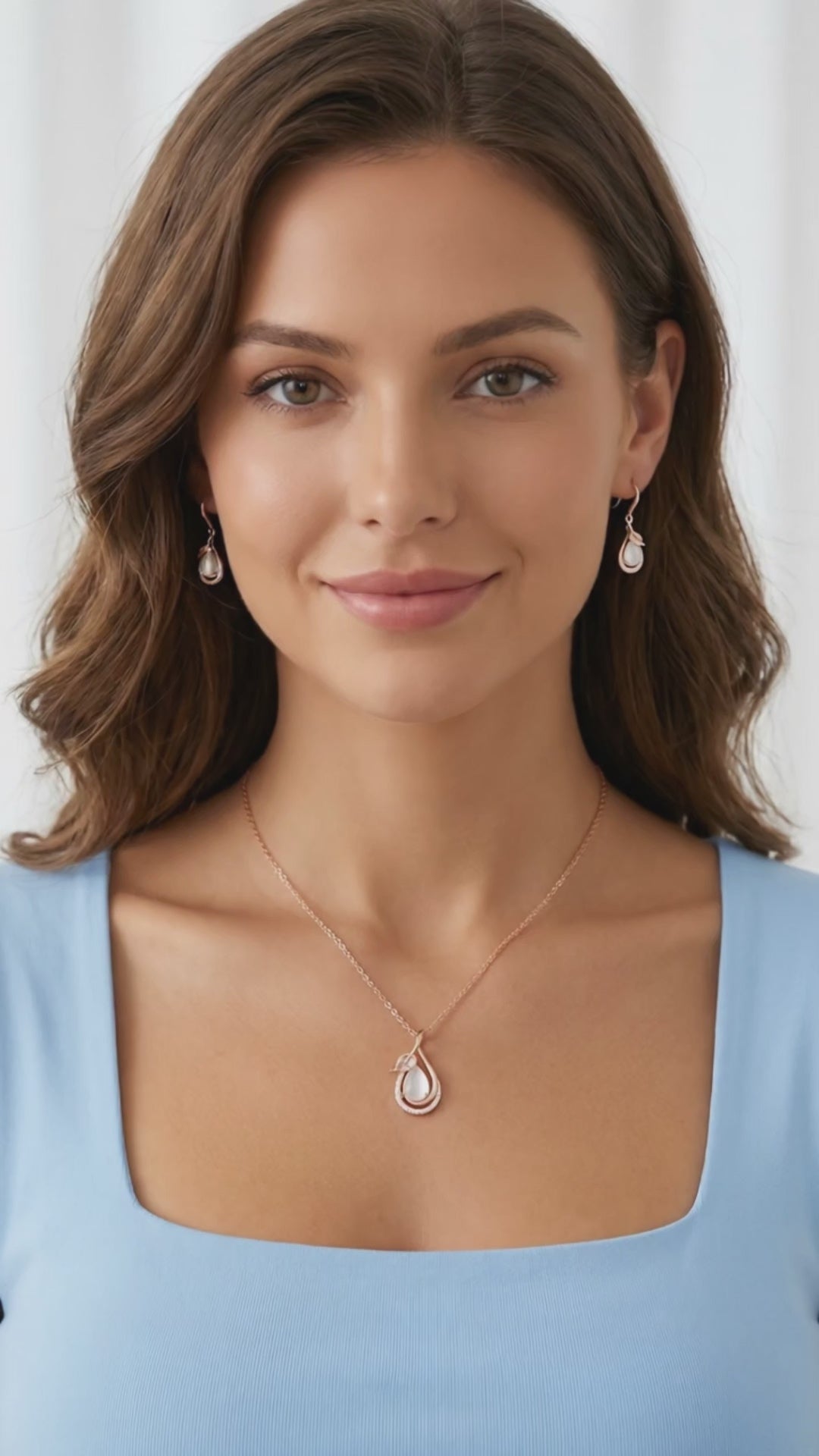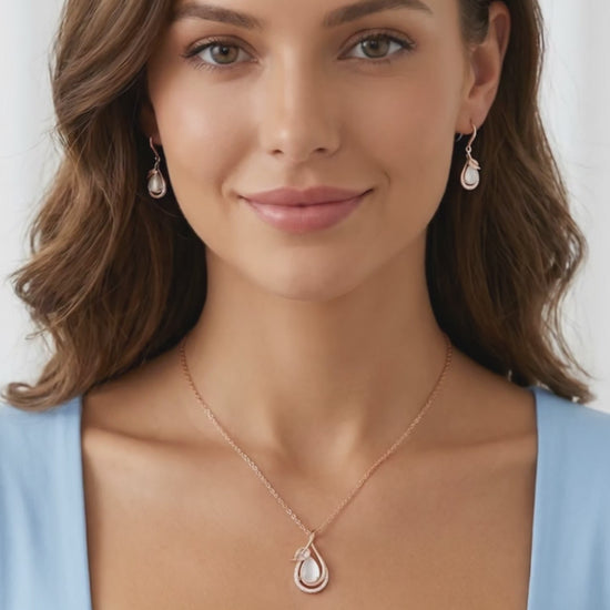 LOUISE Rose Quartz Earrings, Necklace Set in 18K Rose Gold Over Sterling Silver