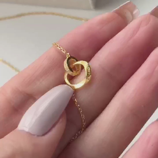 LOVELY Engraved Interlocking Circles Necklace 18K Gold Over Sterling Silver