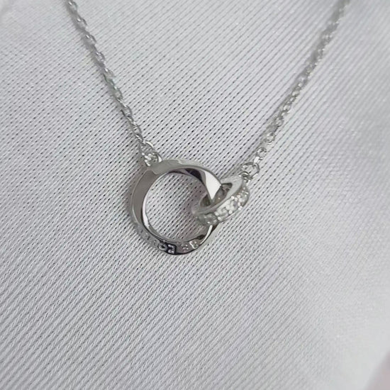 LOVELY Engraved Interlocking Circles Necklace in Rhodium Over Sterling Silver