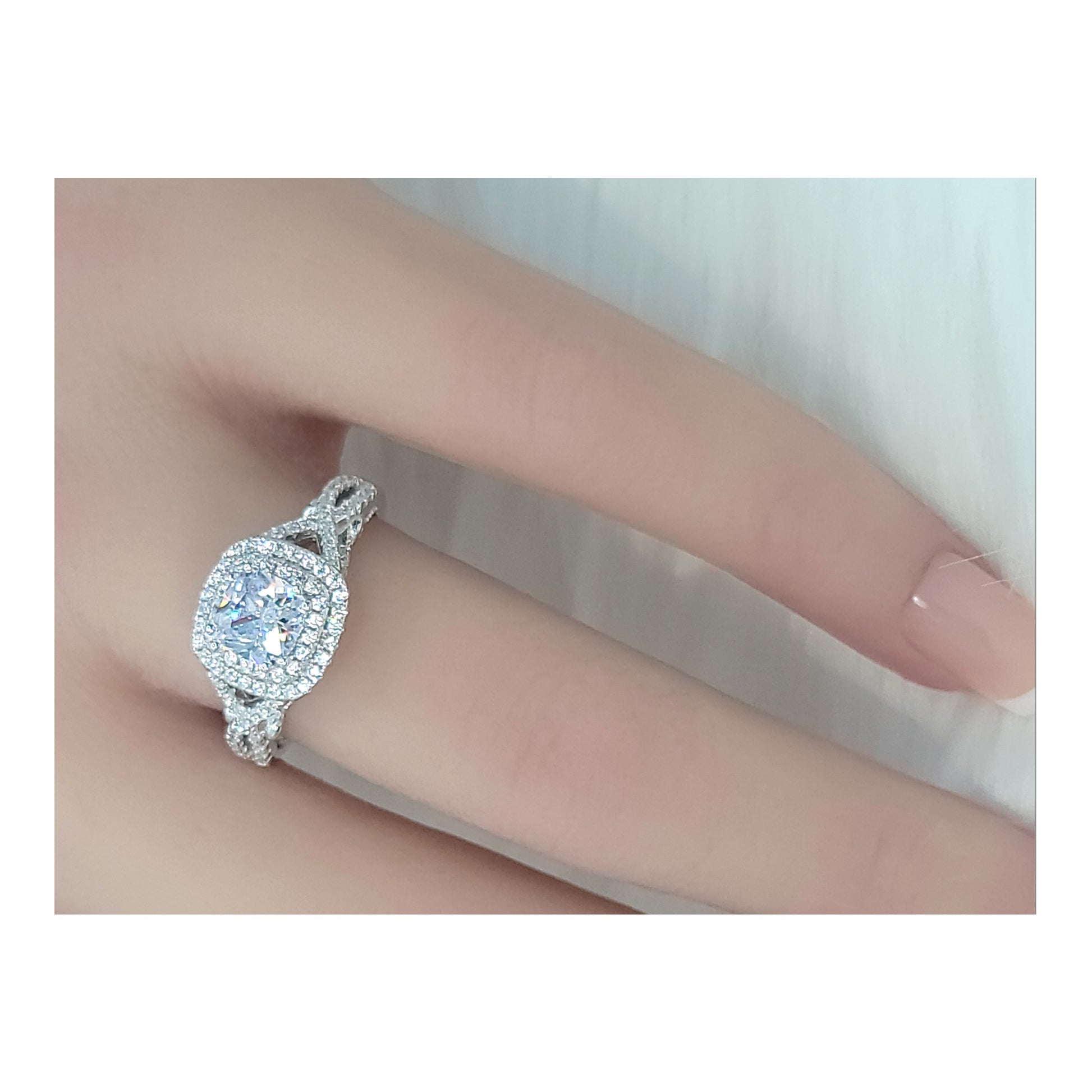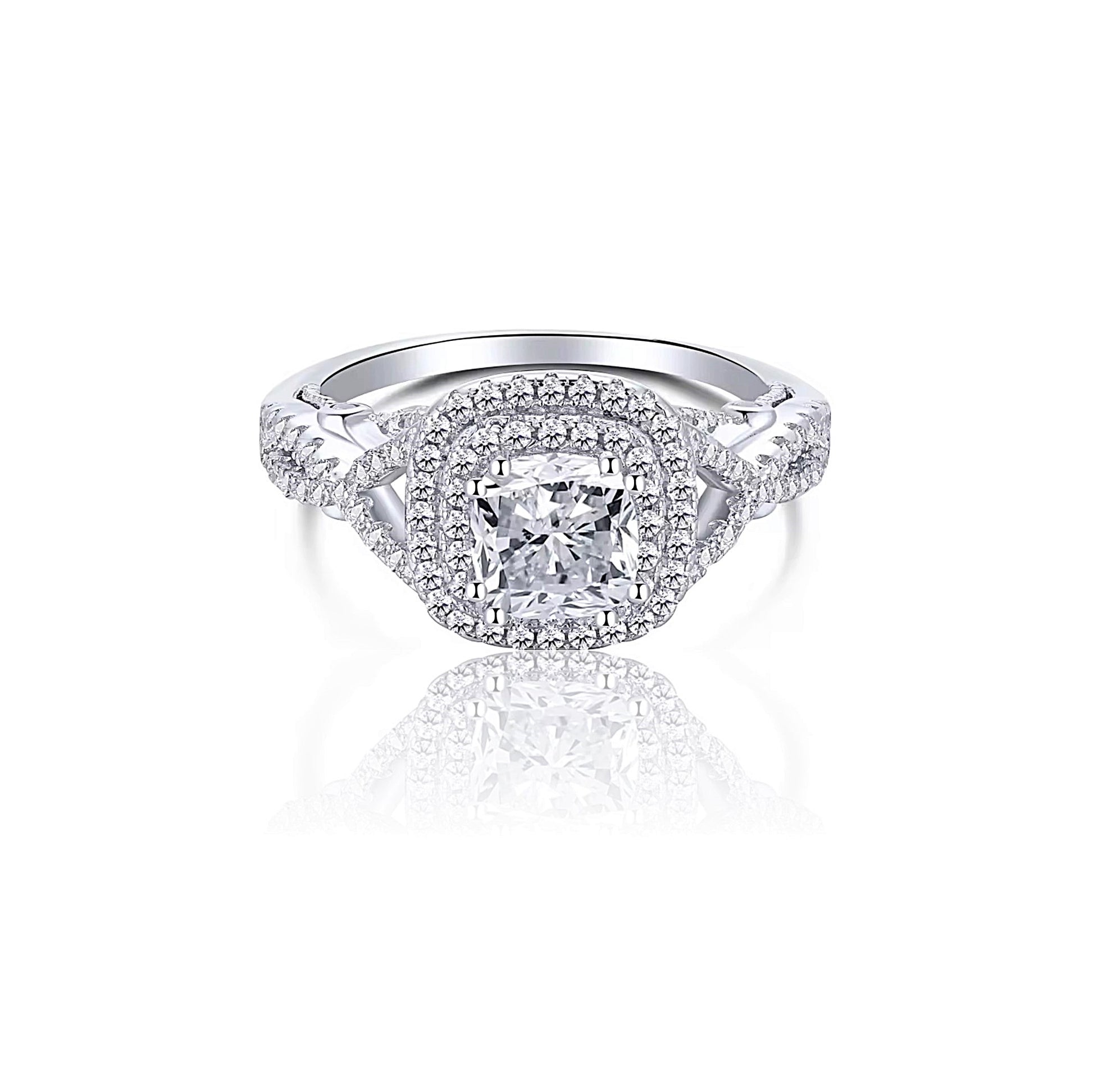 MAGGIE White CZ Diamond Simulant Double Halo Ring in Rhodium Over Sterling Silver