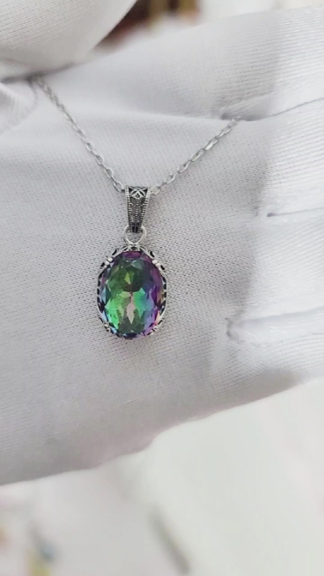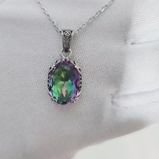 Experience the beauty of a real precious stone without breaking the bank! Bring some colorful shine into your wardrobe with this stunning synthetic rainbow topaz pendant and necklace. Featuring a brilliant synthetic gemstone set in rhodium plated sterling silver, this pendant is sure to make a statement. Embrace the elegance and charm of a real precious stone without splurging!