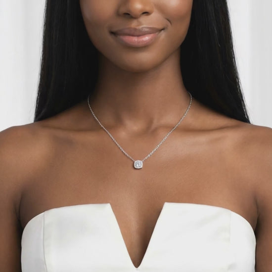MONIQUE Square Solitaire White CZ Diamond Necklace in Rhodium Over Sterling Silver