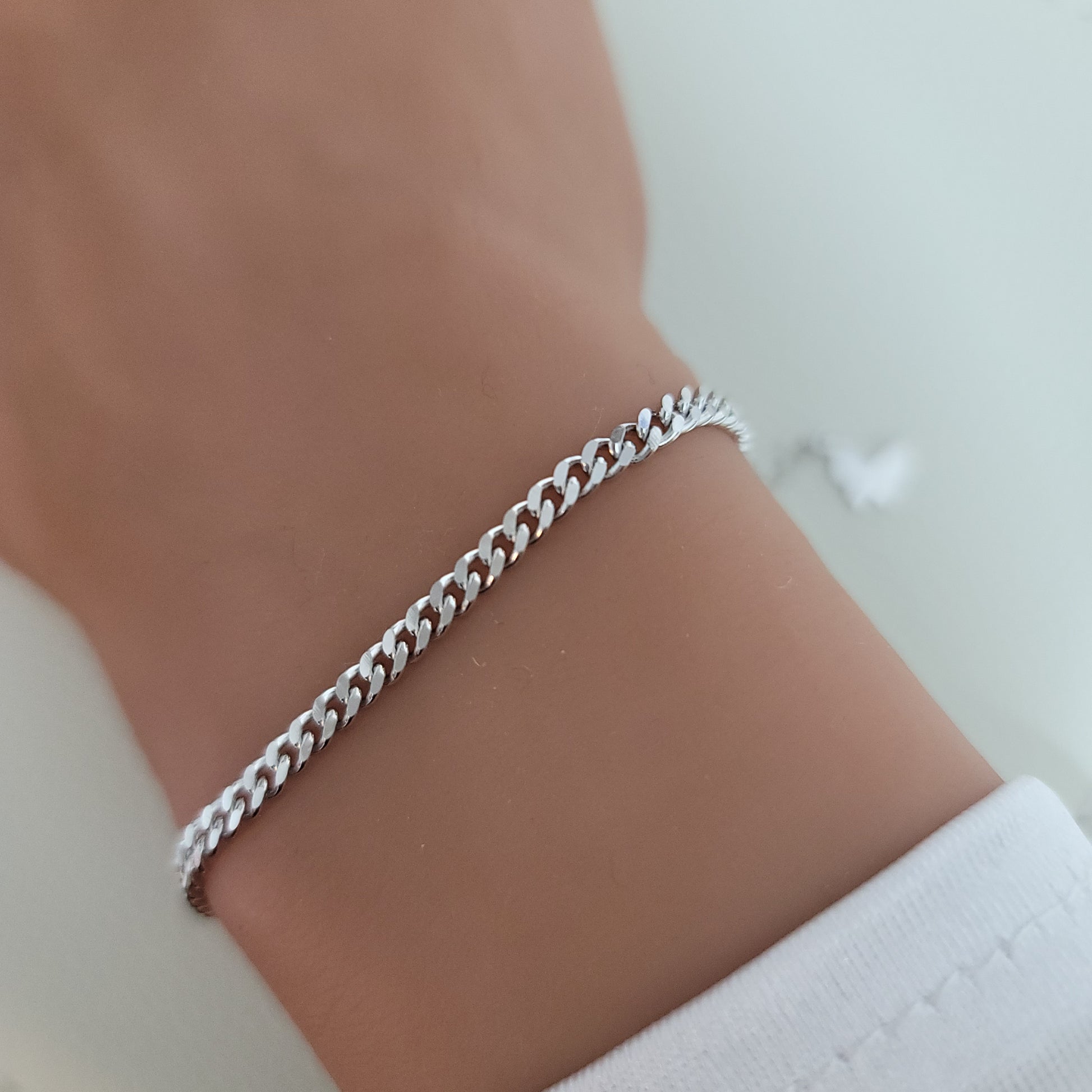 NADIA Dainty Curb Chain Bracelet in Rhodium Over Sterling Silver