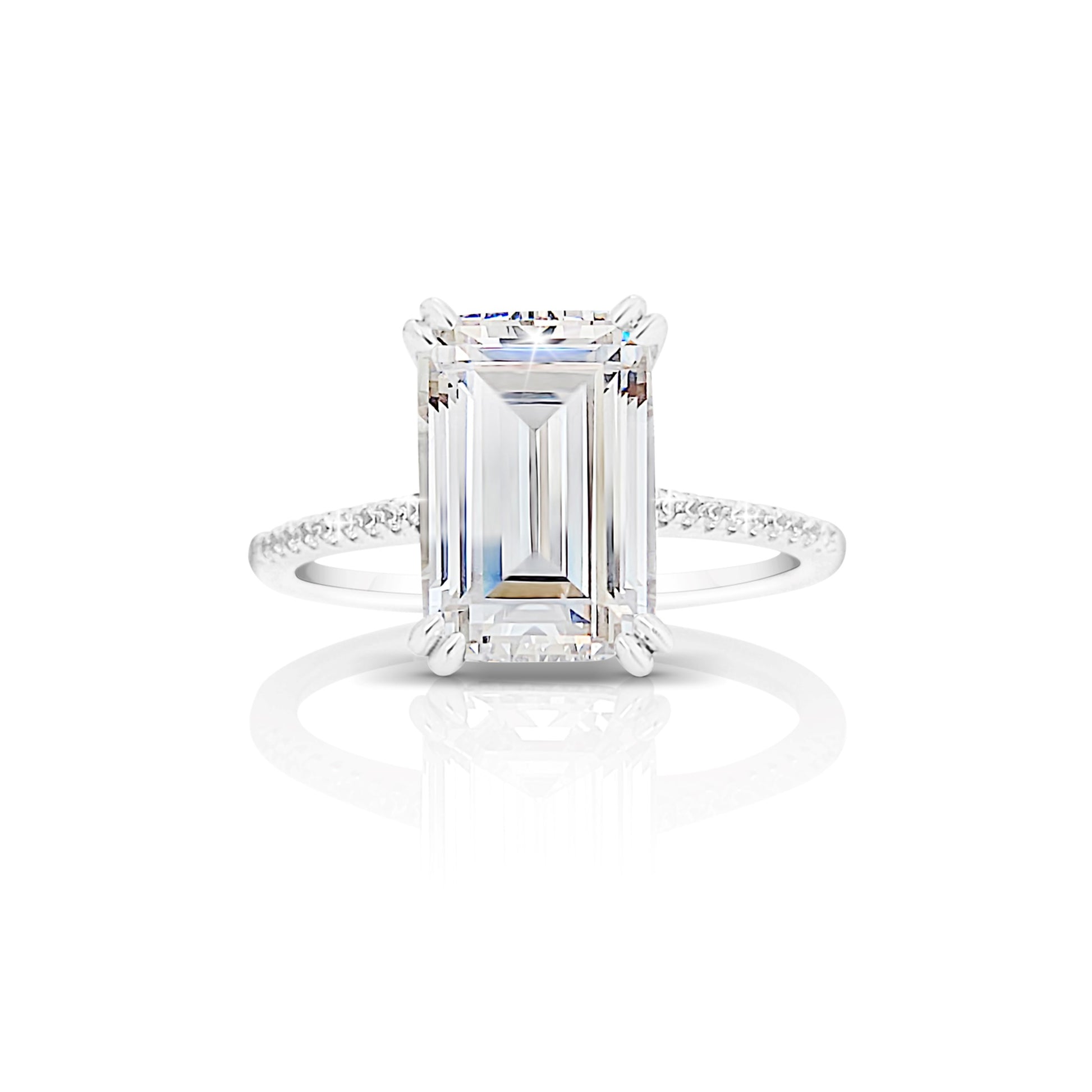 PHOEBE Emerald Cut Pave White CZ Diamond Simulant Ring in Rhodium Over Sterling Silver