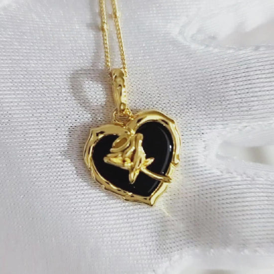ROSE Black Onyx Heart Pendant Necklace 18K Gold Over Sterling Silver