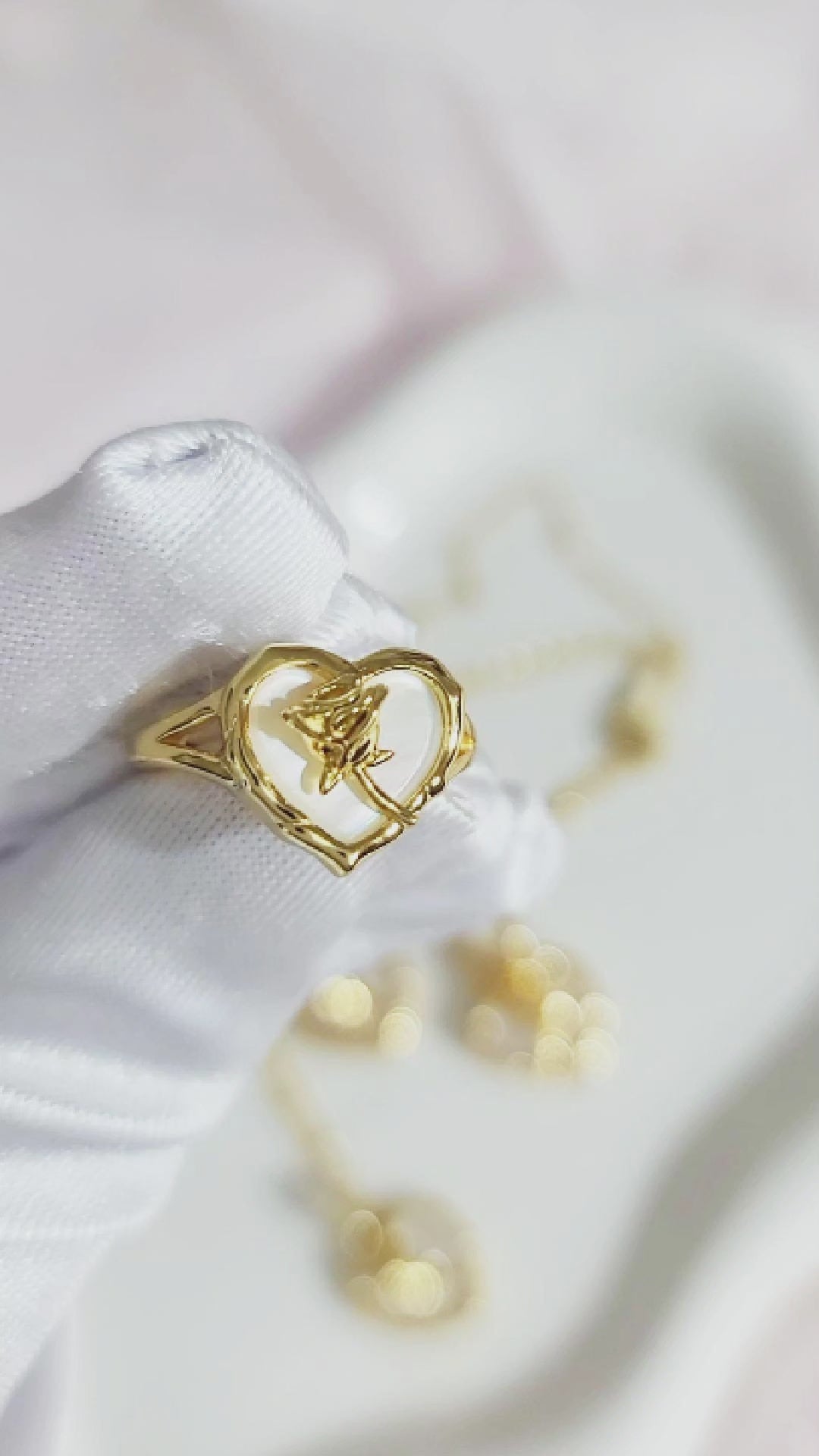ROSE Mother-Of-Pearl Heart Earrings, Necklace, Ring Set in 18K Gold Over Sterling Silver