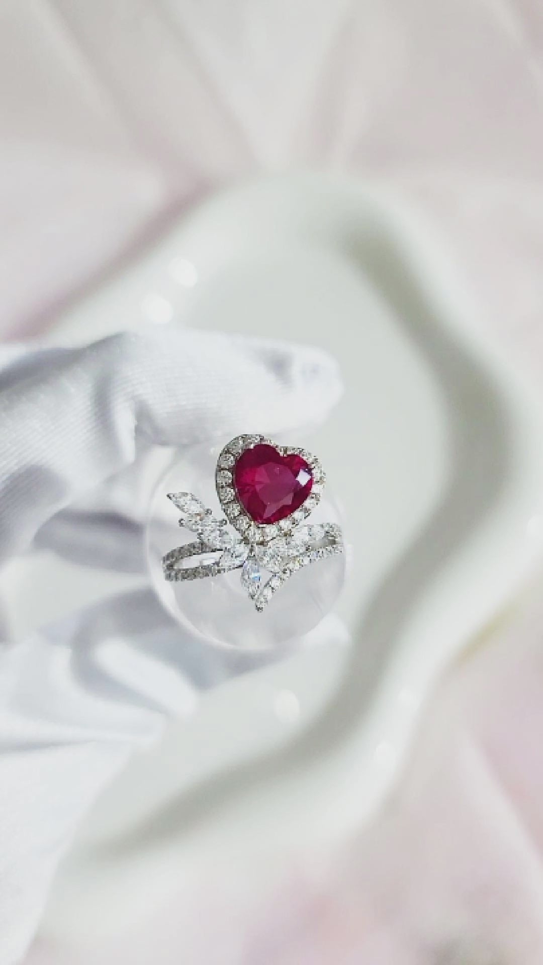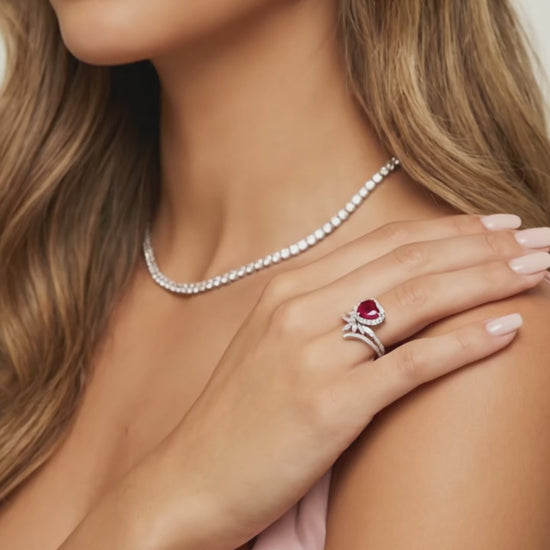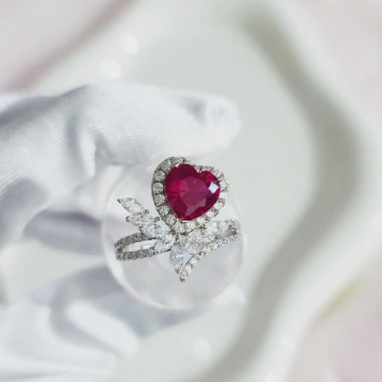 RUBEE Ruby Cluster Heart Ring • Rhodium Over Sterling Silver • CZ Diamond
