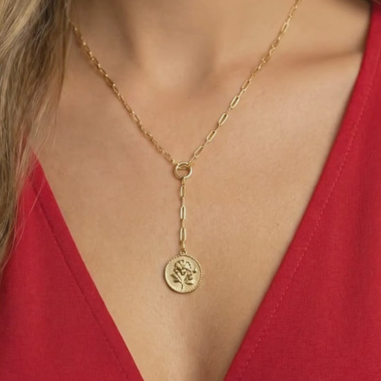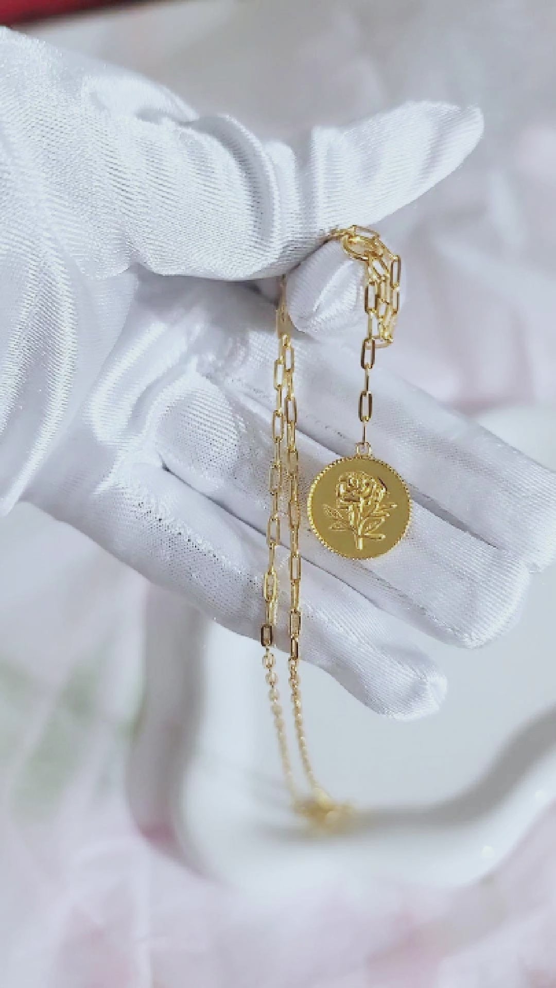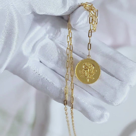 Indulge in the beauty and romance of Simonne paperclip drop pendant and necklace! This exquisite piece features a delicate rose design, crafted with 18K gold plating over sterling silver, giving it a touch of elegance and charm. Its delicate design is perfect for adding a feminine touch to any outfit and will surely catch the eye of those around you. Feel confident and radiant as you wear this stunning necklace. Experience the pure essence of romance captured within a single rose, a true symbol of everlasting love!