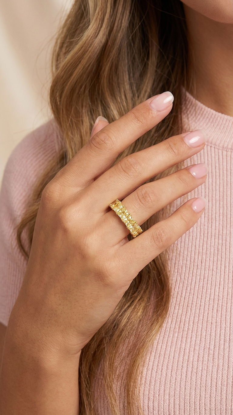 Experience the luxurious feeling of opulence with our Sofia Eternity Tennis Band in sterling silver and 14K gold plated! Made with high-quality materials, this elegant and shiny ring adds a touch of beauty to any outfit. This ring exudes timeless beauty and makes you feel like a million dollars. The brilliant shine is reminiscent of diamonds, and will leave you feeling luxurious and elegant every time you wear it. Indulge in the ultimate luxury and embrace the opulence of our timeless design!