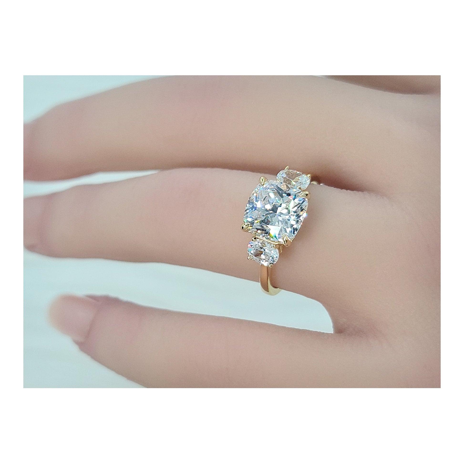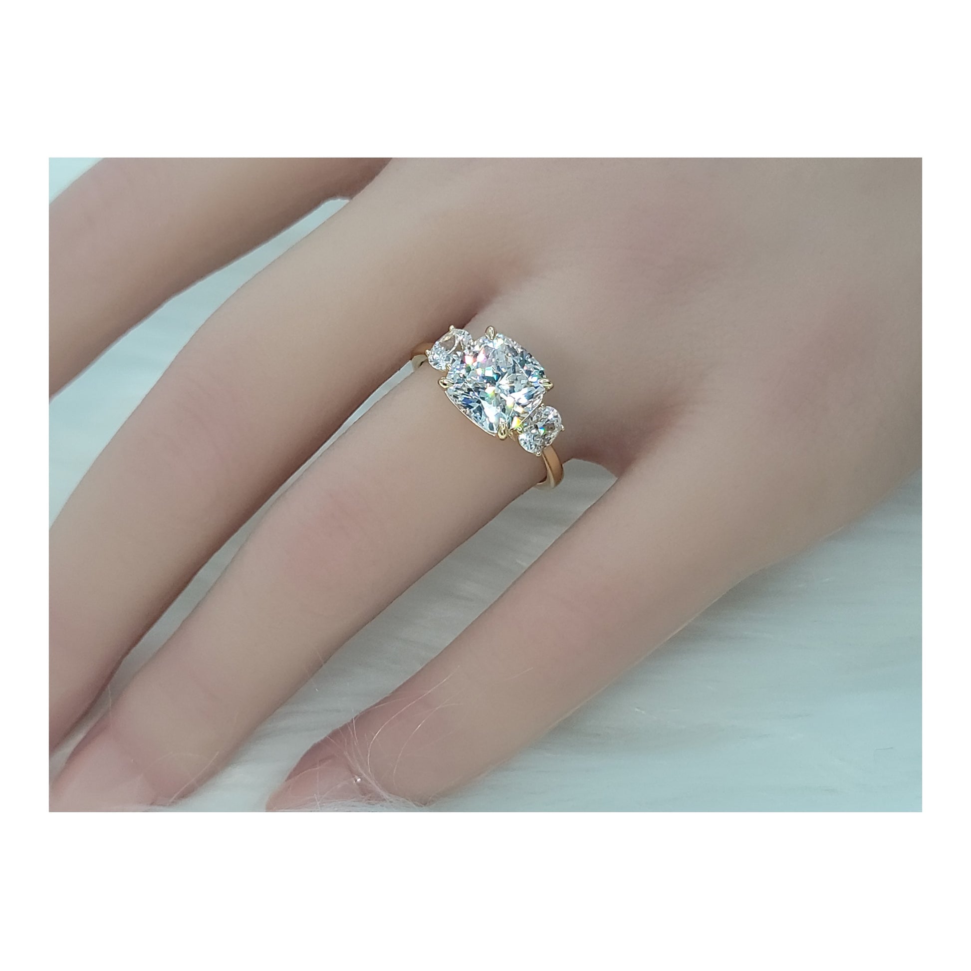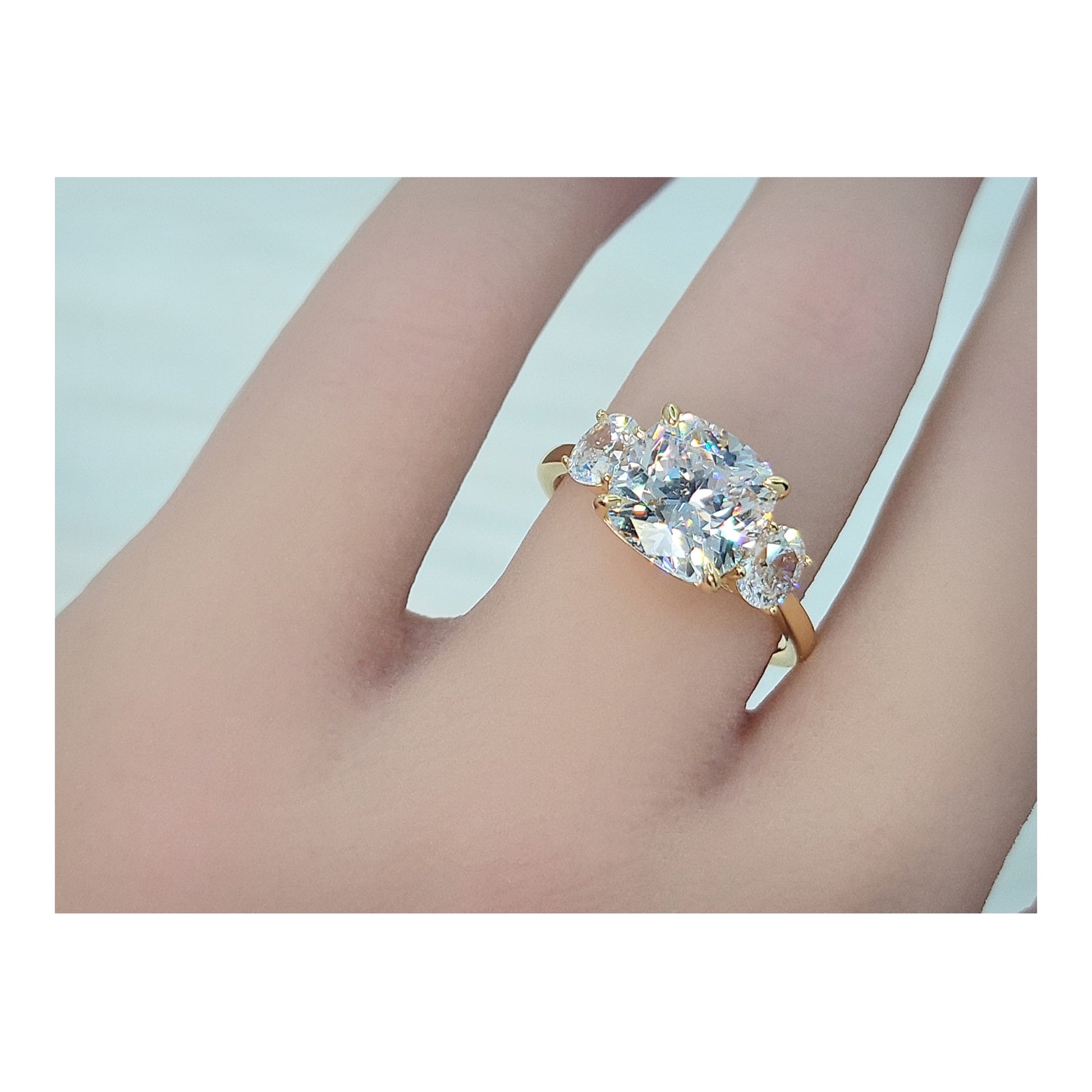 Make your special day even more magical with this exquisite three stone ring! Crafted with sterling silver and plated with 14K gold, it glistens beautifully under any light. The dazzling cubic zirconia stones give off the appearance of real diamonds, providing the same luxury and elegance without breaking the bank. Perfect for a wedding, engagement, anniversary, or any special occasion, this ring is a timeless piece that you'll cherish forever.