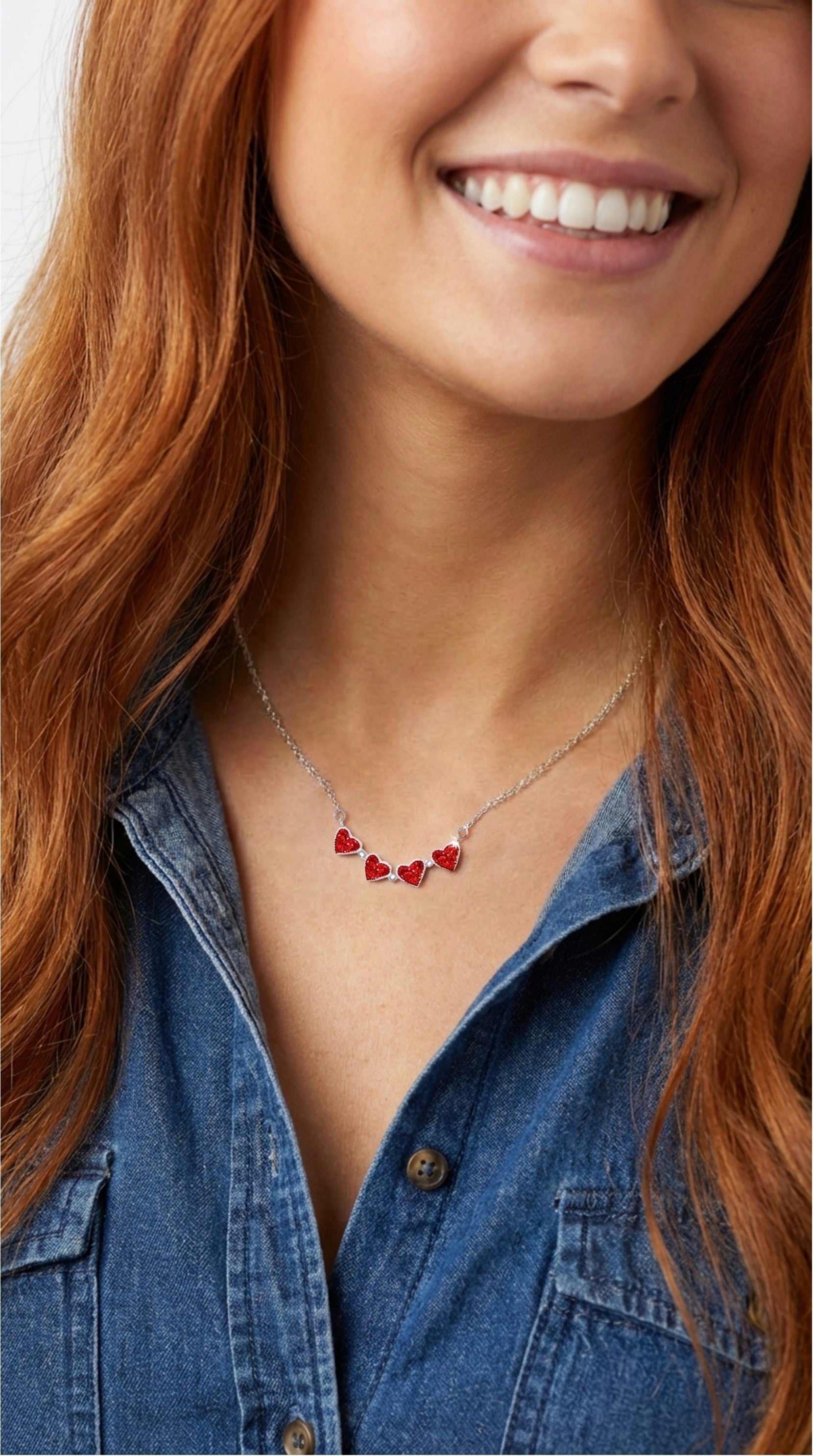 One necklace—Four ways to wear it. Experience the endless possibilities of this beautifully designed heart clover necklace! The four hearts come together to create a beautiful clover design, while also allowing you to open and transform the pendant into a new stunning design. Wear it with either the red or blue side facing out, making it perfect for any outfit or occasion. Made with sterling silver and rhodium plating, it's not only beautiful but also durable and long-lasting. Perfect for adding a pop of color and style to any outfit, you'll love the versatility and charm of this beautiful necklace. Embrace its endless possibilities!