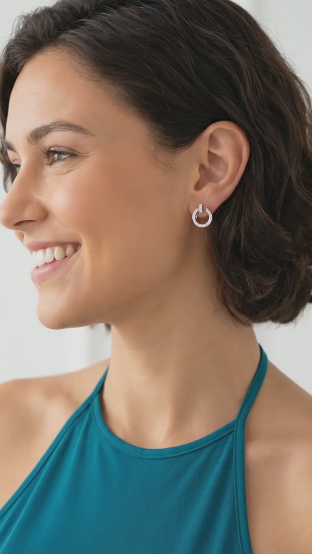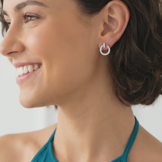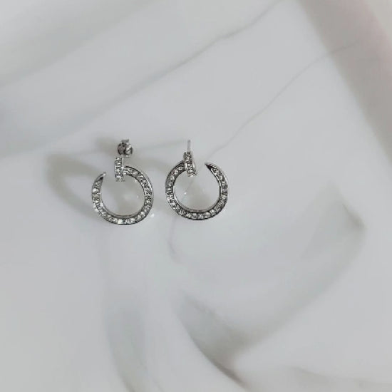Shimmer and shine with Tania open hoop earrings! Made with luxurious sterling silver and 18K white gold plating, these earrings are a statement of elegance. The open circle design is adorned with sparkling Swarovski crystals, catching the light in every direction. Effortlessly stylish, these earrings add a touch of sophistication to any outfit while giving you a glamorous sparkle that lasts all day. Upgrade your everyday look or add a touch of glamour to your evening attire with these stunning earrings!